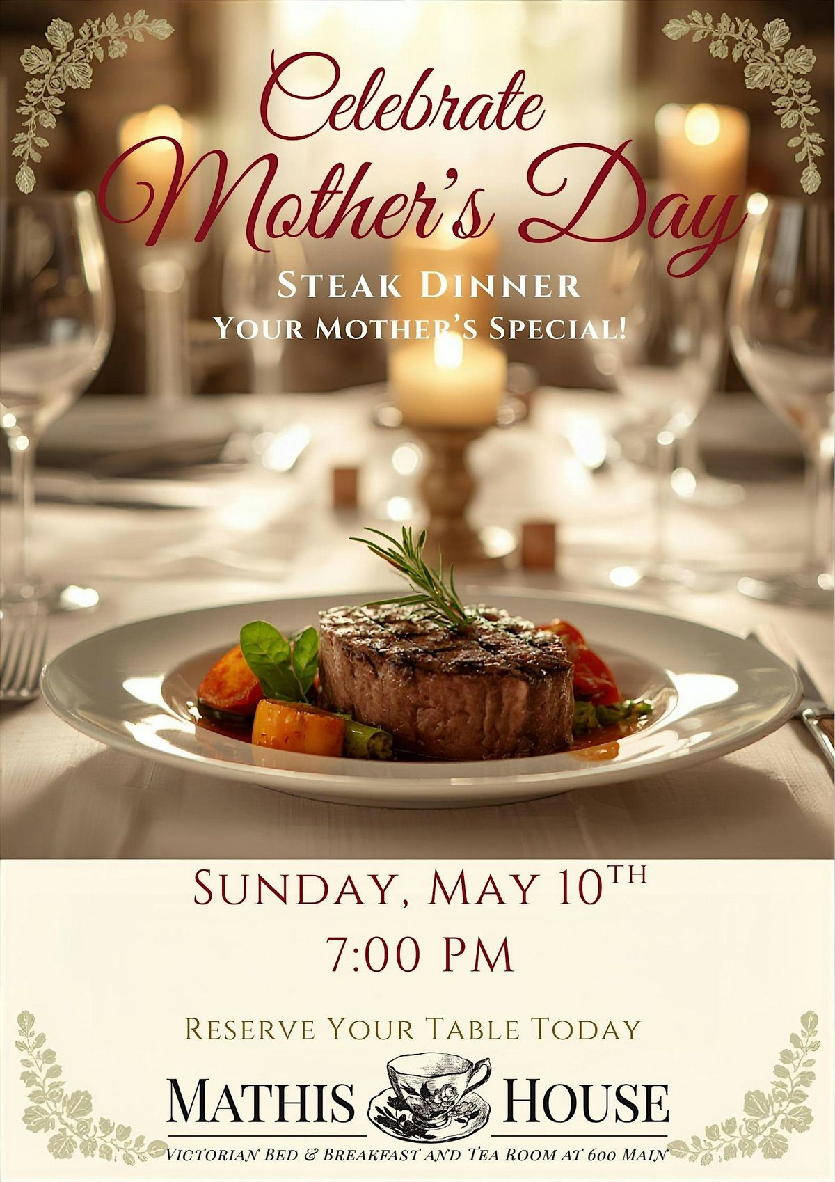 Elegant table settings with flowers for Mom
