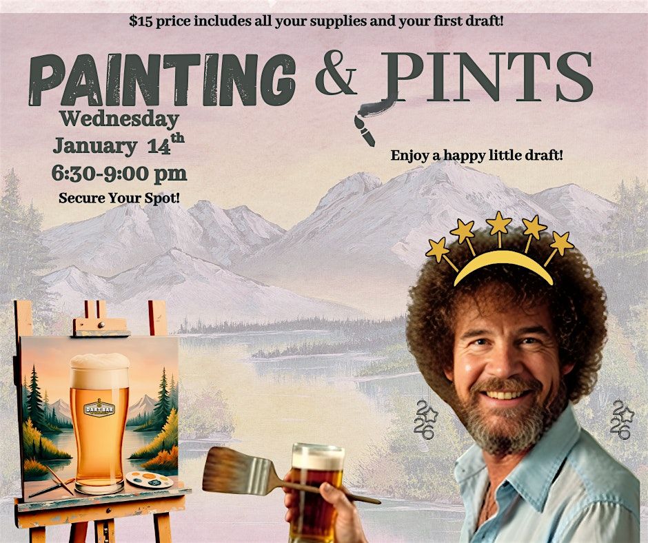 Painting & Pints at Dart Bar! Wednesday, January 14th | 6:30–9PM. $15 covers supplies + your first draft. Secure your spot & sip happy!About this Event