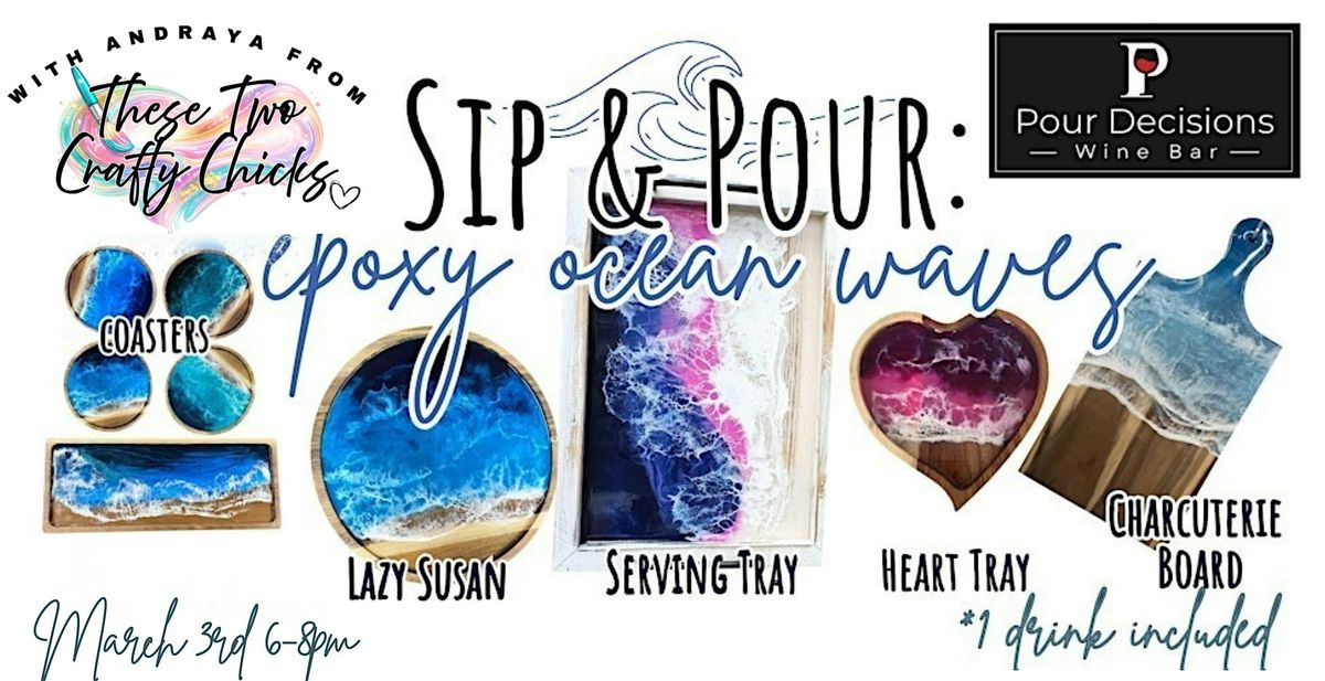 Come join us for a fun evening of crafting and sipping your favorite drinks. In this class, you'll learn how to create stunning ocean wave designs using two part epoxy resin. No experience necessary - our talented instructors will guide you every step of the way.
