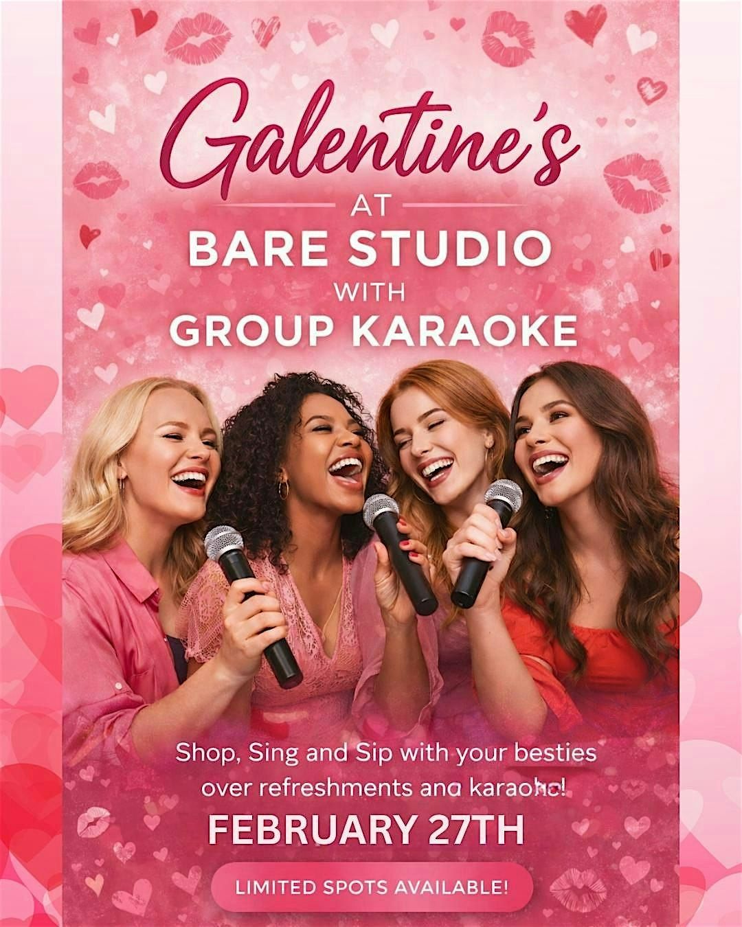 Join us at Bare Studio for an unforgettable Galentine’s Group Karaoke Night, featuring group-style karaoke, a live DJ ( Golden Stage Productions) , local vendors, wellness experiences, sweet treats, and ALL the vibes.
