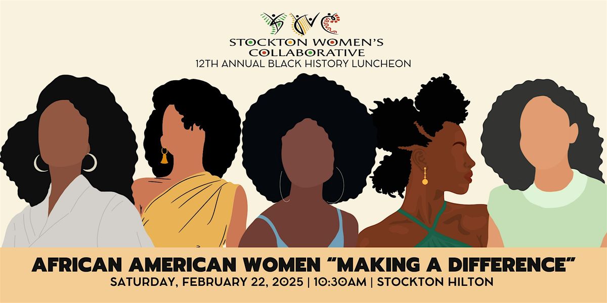 Welcome to the Stockton Women's Collaborative 12th Annual Black History Luncheon! Join us at the Hilton Stockton for a day of celebration and empowerment. This event is a wonderful opportunity to honor the achievements and contributions of Black women throughout history. Come together with like-minded individuals to enjoy delicious food, engaging speakers, and meaningful conversations. Let's commemorate the past, celebrate the present, and inspire the future. Don't miss out on this special occasion!