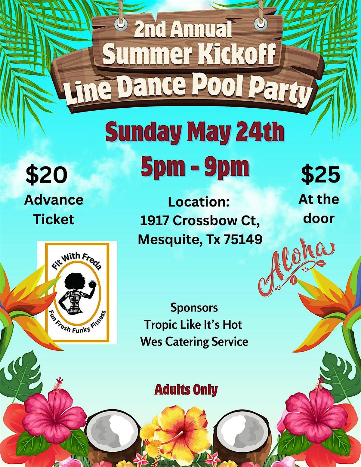 Join us for dancing and splashing at the Summer Kickoff Line Dance Pool Party! Get ready to dance, chill, chat, and show off your best line dance moves by the pool. Whether you're a beginner or a seasoned pro, everyone is welcome. Tell a friend and bring a friend. Put on your favorite summer Luau outfit, and get ready to make a splash at the Summer Kickoff Line Dance Pool Party! Get your ticket ASAP!!! Space is limited.
