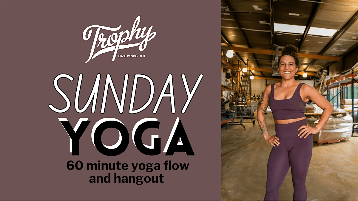 Sunday Yoga classes take place monthly at Trophy Brewing's Maywood location. Join us inside the brewery or out on the lawn for a 60-minute yoga flow for all experience levels. Beginners welcome! Bring your mat and any props you like to use.