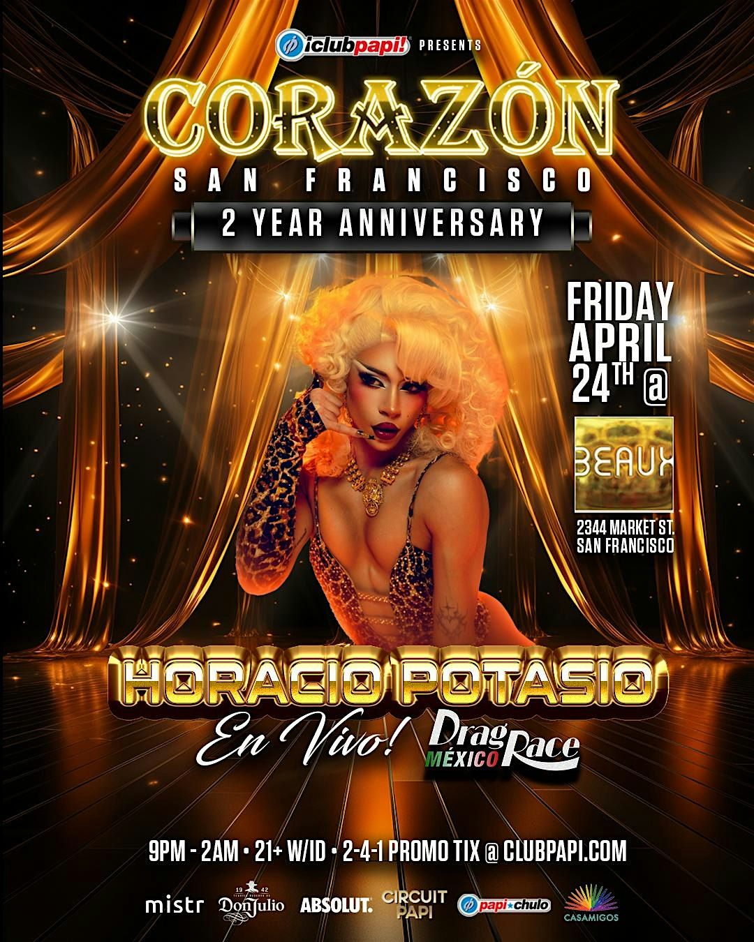 FRIDAY, APRIL 24: Corazon SF Celebrates tour 2 Year Anniversary in the #CASTRO with a special show featuring RPDR MEXICO STAR "HORACIO POTASIO" Performing Live! | LA GO-GO'S Y MAS! #LATINOSINTHECASTRO #PAPI #CORAZONSF