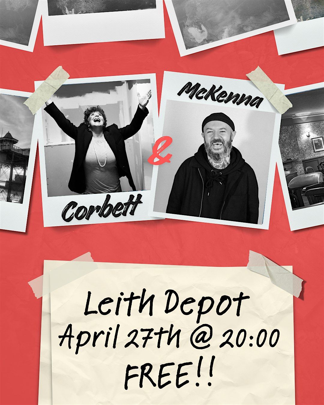 Join us at Leith Depot on April 27, 2026 at 8:00 PM for an awesome night with Corbett and McKenna as they work out their show before taking it to the Brighton Fringe!