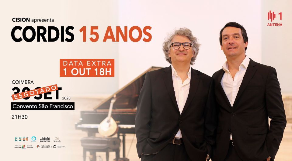 CORDIS 15 ANOS é um concerto CISION com apoio da CÂMARA MUNICIPAL DE COIMBRA/CONVENTO SÃO FRANCISCO, ANTENA1, ZONAPRO e P2 Produções.