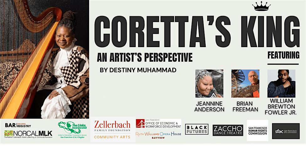 , a multidisciplinary performance honoring the life, legacy, and artistic spirit of Coretta Scott King will be presented on Friday, April 3, 2026, at the historic Bayview Opera House in San Francisco in collaboration with the Zellerbach Family Foundation, the San Francisco Chapter of The Links Incorporated and NorCal MLK Foundation.
