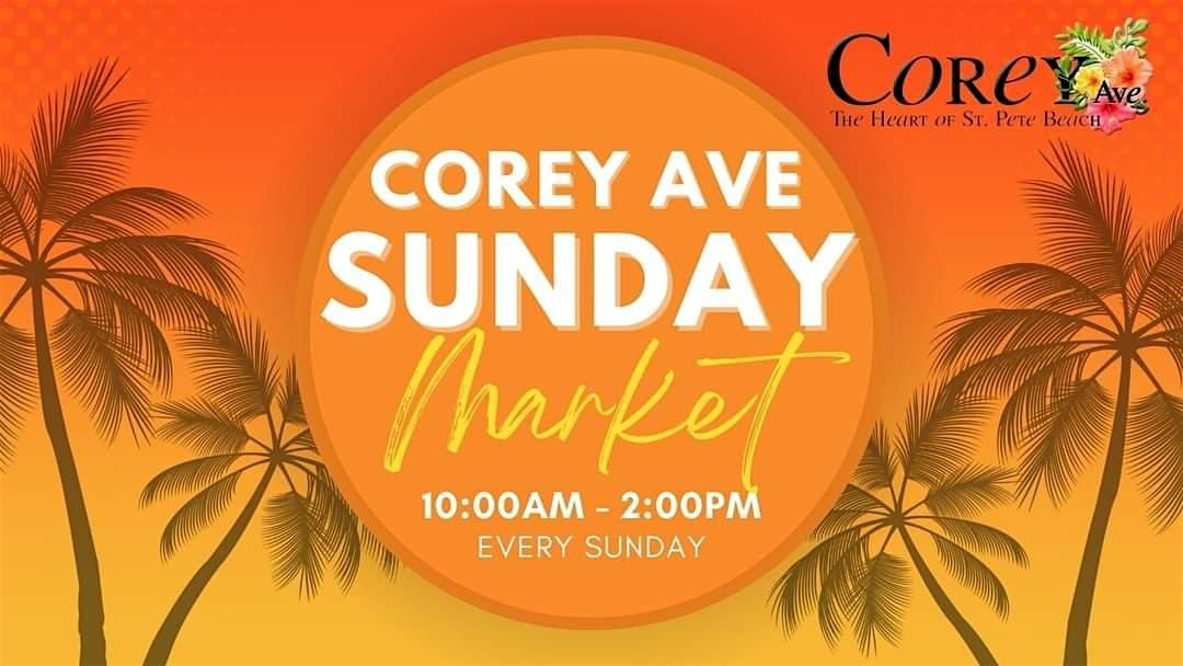 J oin us every Sunday morning, all year long, for the Corey Ave Sunday Market on St. Pete Beach. We host about 100 vendors every weekend, including fresh produce, baked goods, clothing, jewelry, art, home dΓ©cor, gifts, and so much more. Plus food trucks & vendors with refreshments, breakfast, brunch, lunch, and desserts.