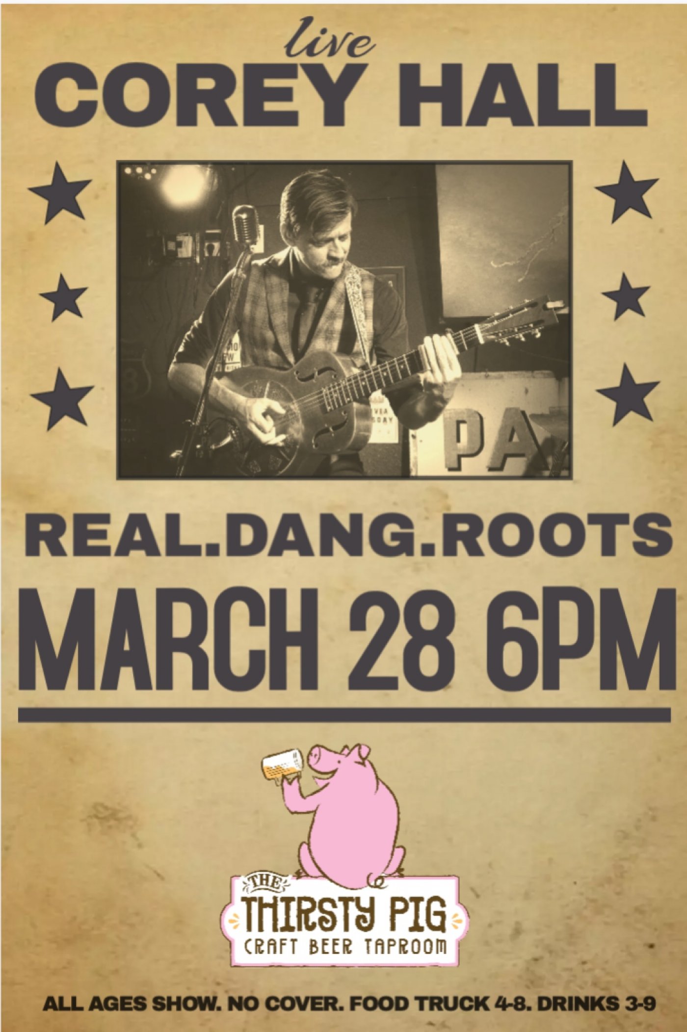 To hear Corey play the blues is to step back into history to the formative days of the genre, when field hollers mixed with African rhythms, jazz, folklore and even a touch of vaudeville to create something distinctly American. The Panama City musician has his eye on the future. Family friendly show! Food truck open 4-8, drinks till 9.