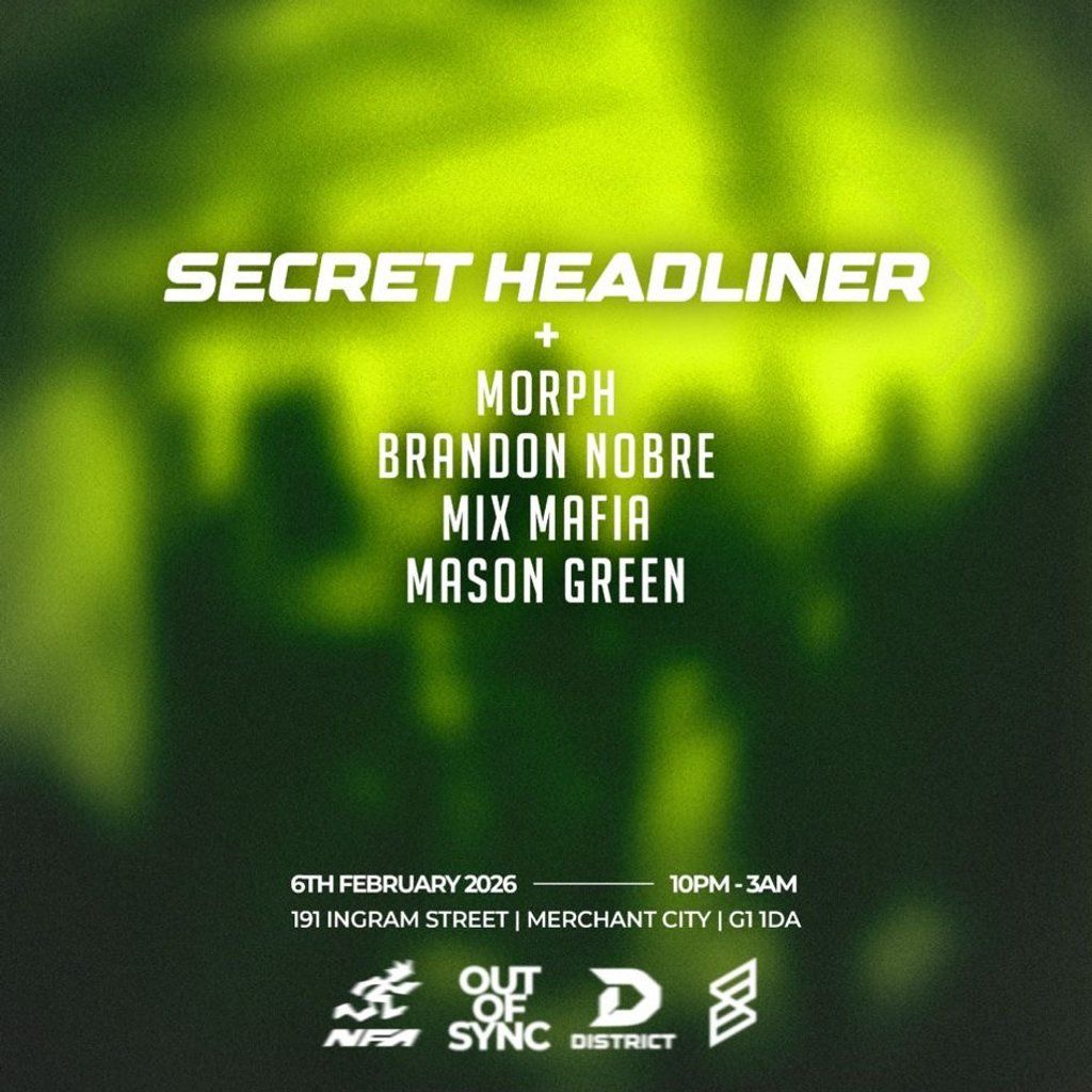 No Fixed Abode, Out of Sync and District unite for a night of house music, featuring a secret headline act and Glasgow's best local DJs.Music Genres : House
