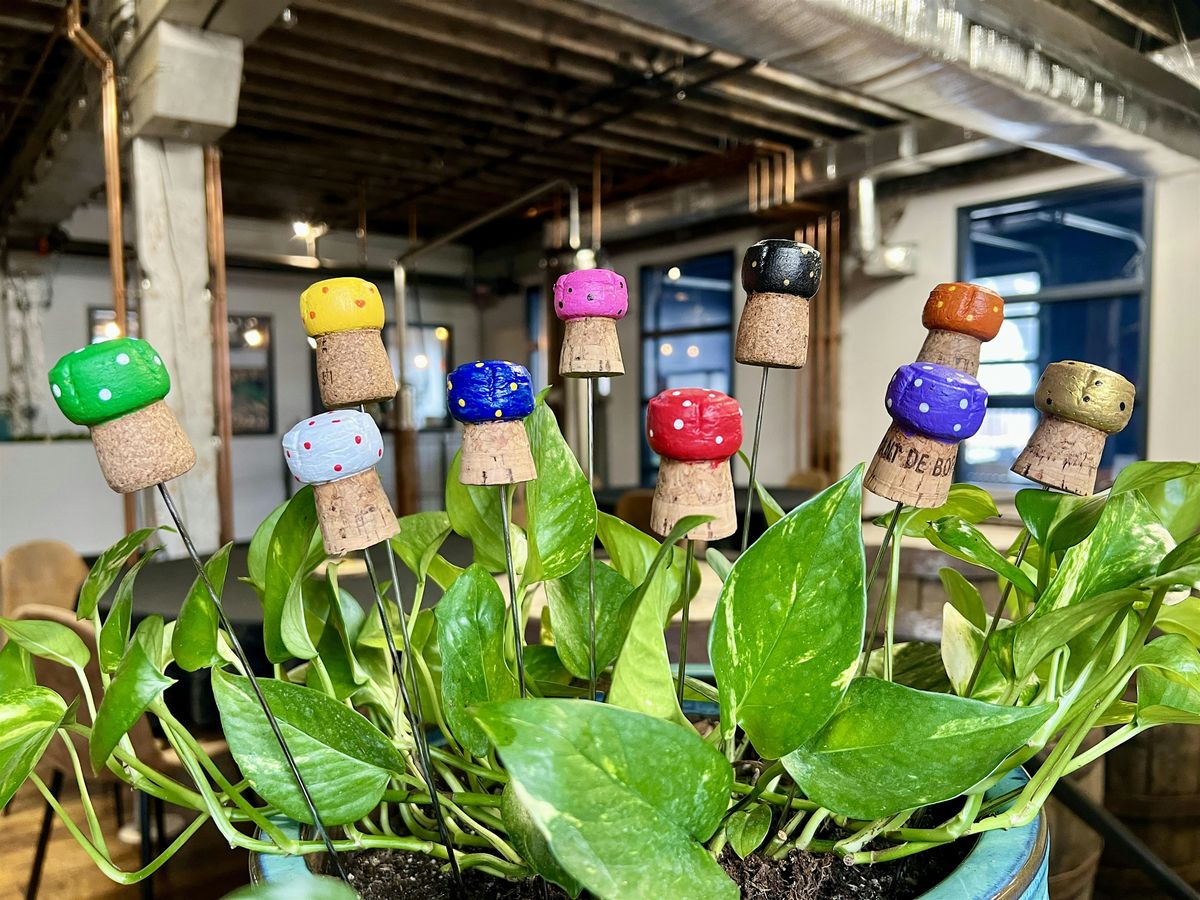 Enjoy a complementary cocktail or mocktail as you design and create a set of six Mushroom Plant Sticks using recycled wine corks and high quality materials!