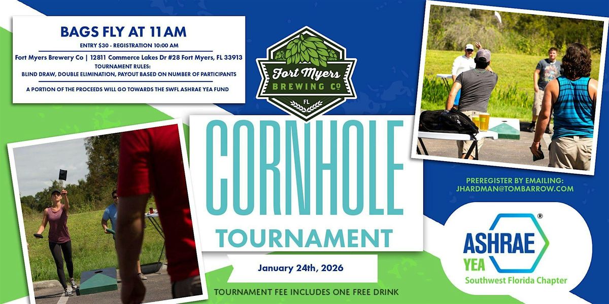 Join us at FMBrew for a Cornhole Tournament benefiting the ASHRAE Young Engineers in ASHRAE (YEA) Fund, supporting professional development, leadership training, and networking opportunities for young engineers in Southwest Florida. We’ll be opening early so you can grab a beer and get settled before the games begin. South Pizza Co. will be on site starting at noon, followed by Wicked Streatery at 2:00pm. Live music kicks off at 2:00pm with Paisley Howell and continues at 6:00pm with No Wrong Turn. Bring your friends, enjoy great beer, food, and music, and help support the next generation of engineering professionals! Pre-register by emailing [email protected].