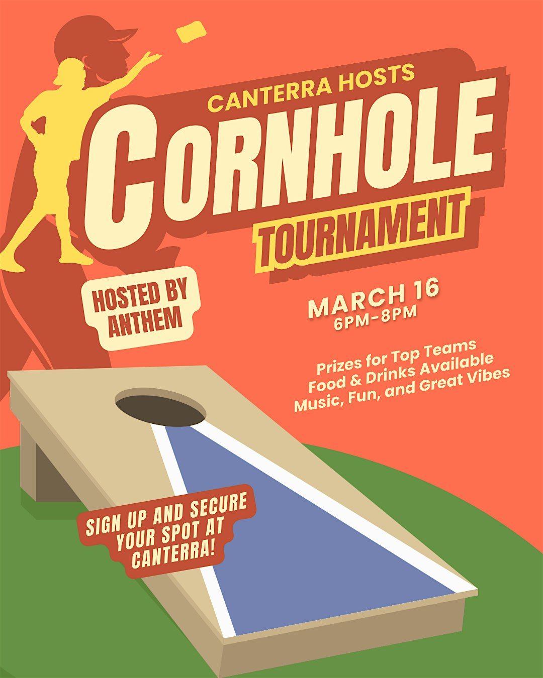 Get ready for some friendly competition and good vibes! Join us at Canterra for an epic Cornhole Tournament hosted by Anthem. Whether you're a seasoned vet or just wanna have fun, this event is all about great times and awesome throws. Don't miss out on the action—grab your friends and come show off your skills! Sign up in advance at Canterra.