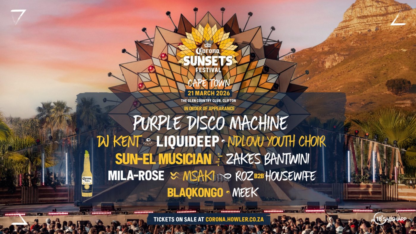 Cape Town! The Corona Sunsets Festival lineup is here. This March, we welcome Purple Disco Machine to South Africa for the first time ever, supported by an incredible local lineup featuring Msaki, Liquideep, DJ Kent & many more...