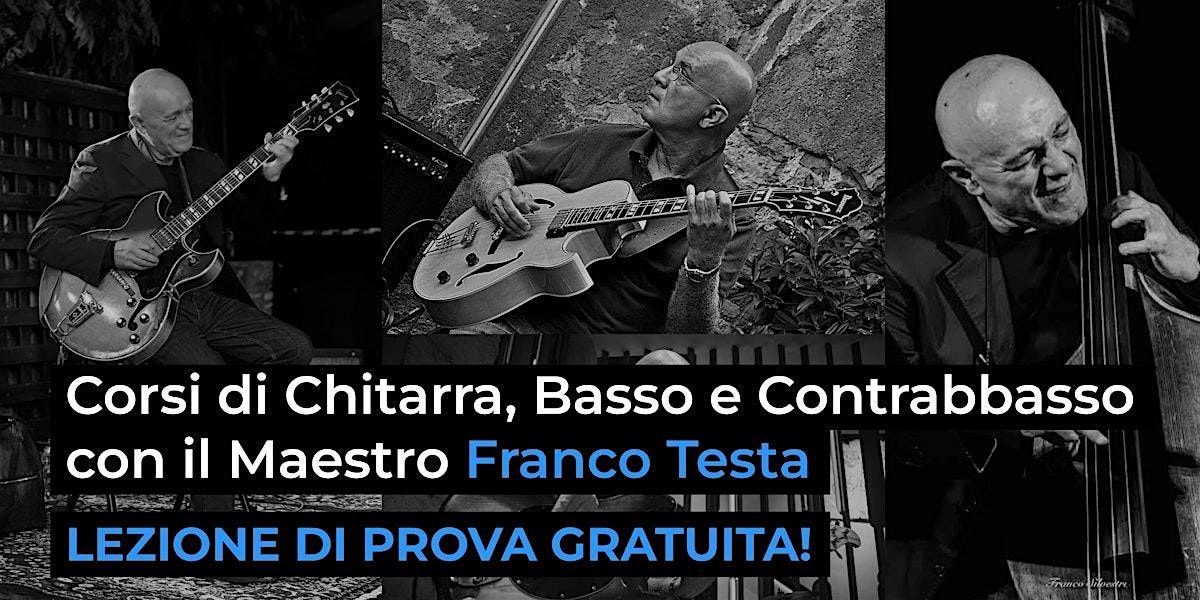 Percorsi di strumento strutturati per livelli progressivi (base → intermedio → avanzato) e tenuti in lezioni individuali da 45 minuti in presenza. Nel corso base si imparano accordi, scale fondamentali e brani semplici per familiarizzare con lo strumento; al livello intermedio si approfondiscono tonalità, stili e tecniche; al livello avanzato jazz/pop si studiano armonia avanzata, voicing, tensioni, strutture complesse e interpretazione. I corsi di basso elettrico e contrabbasso seguono un’impostazione base simile: postura, tecnica, scale, brani semplici e approccio a vari generi, con l’obiettivo di permettere a chiunque di proseguire o suonare per piacere.