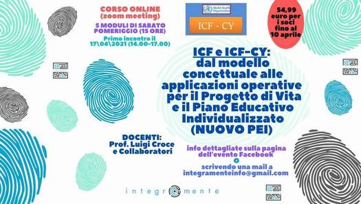 1️⃣ 17\04\2021 (14.00 - 17.00): (1) Il modello concettuale del Funzionamento Umano secondo ICF e ICF-CY | (2) Architettura operativa di ICF e ICF-CY;