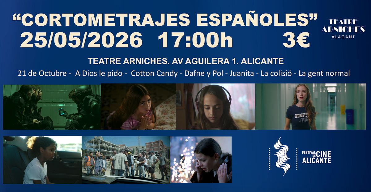 ¡Ven a disfrutar de los CORTOMETRAJES ESPAÑOLES A CONCURSO del 23º Festival de cine de Alicante!About this Event