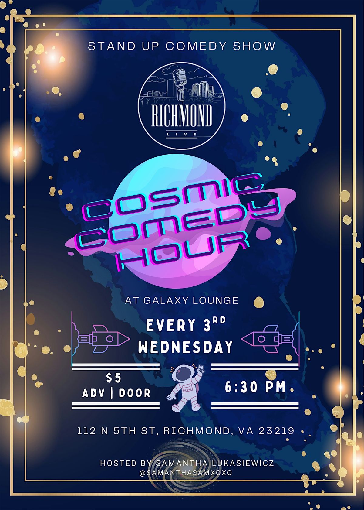 Every 3rd Wednesday join us at Richmond Live in the Galaxy Lounge for an hour of Richmond’s FUNNIEST comedians!About this Event