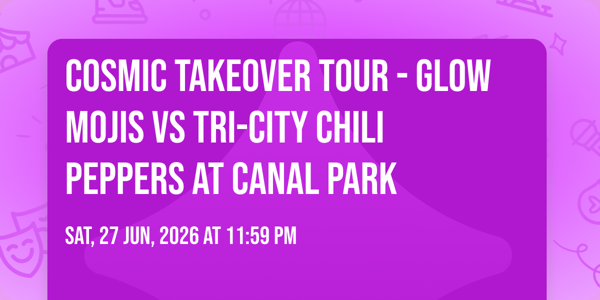 ✨ Discover the extraordinary at Cosmic Takeover Tour - Glow Mojis vs Tri-City Chili Peppers at Canal Park, where magic meets reality in ways you've never imagined! 🏛️ Set in Canal Park nestled in bustling Akron, OH, this event promises to be a landmark occasion. 📅 Taking place on June 27th, 2026 at 11:59 PM, it's going to create an atmosphere where every moment becomes a cherished memory. 🌟 Immerse yourself in an experience crafted with attention to every detail, designed to surprise and delight at every turn. They have worked tirelessly to ensure this event exceeds all expectations, bringing together elements of entertainment, innovation, and pure joy. 🎊 Don't miss your chance to be part of this remarkable journey!
