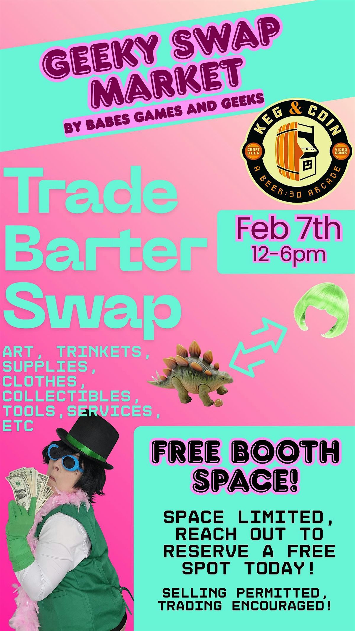 Art, Trinkers, Supplies, Clothes and Collectibles for sale or trade with Babes, Games & Geeks! Get into Cosplay, trade supplies/outfits!