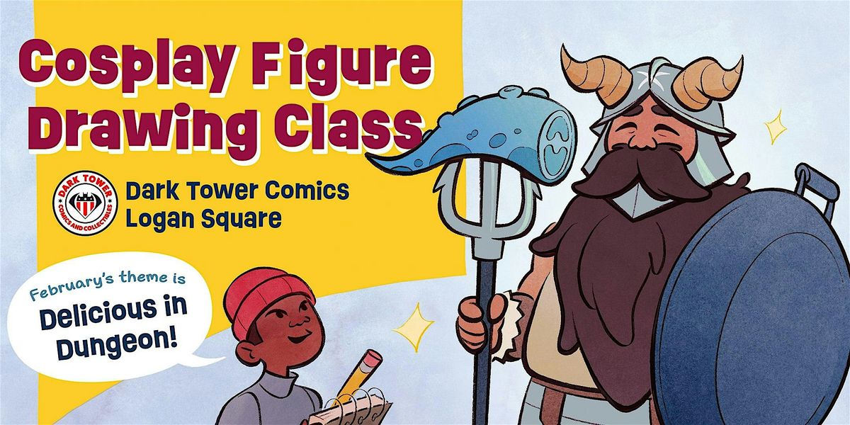 Want to feel more confident in your drawing skills? Join us for a live cosplay figure drawing class at Dark Tower Comics Logan Square! The session is $20, payable at the door. Bring whatever drawing tools you're most comfortable with: sketchbook, ipad, etc. If you need to borrow some drawing supplies, we'll have a few available upon request.This class includes 1 hour of drawing instruction + Q&A, followed by 1 hour of gesture and figure drawing exercises featuring local cosplayer Agi, aka @yuomii_Each month will feature a new live character to sketch; this month's theme is DELICIOUS IN DUNGEON.