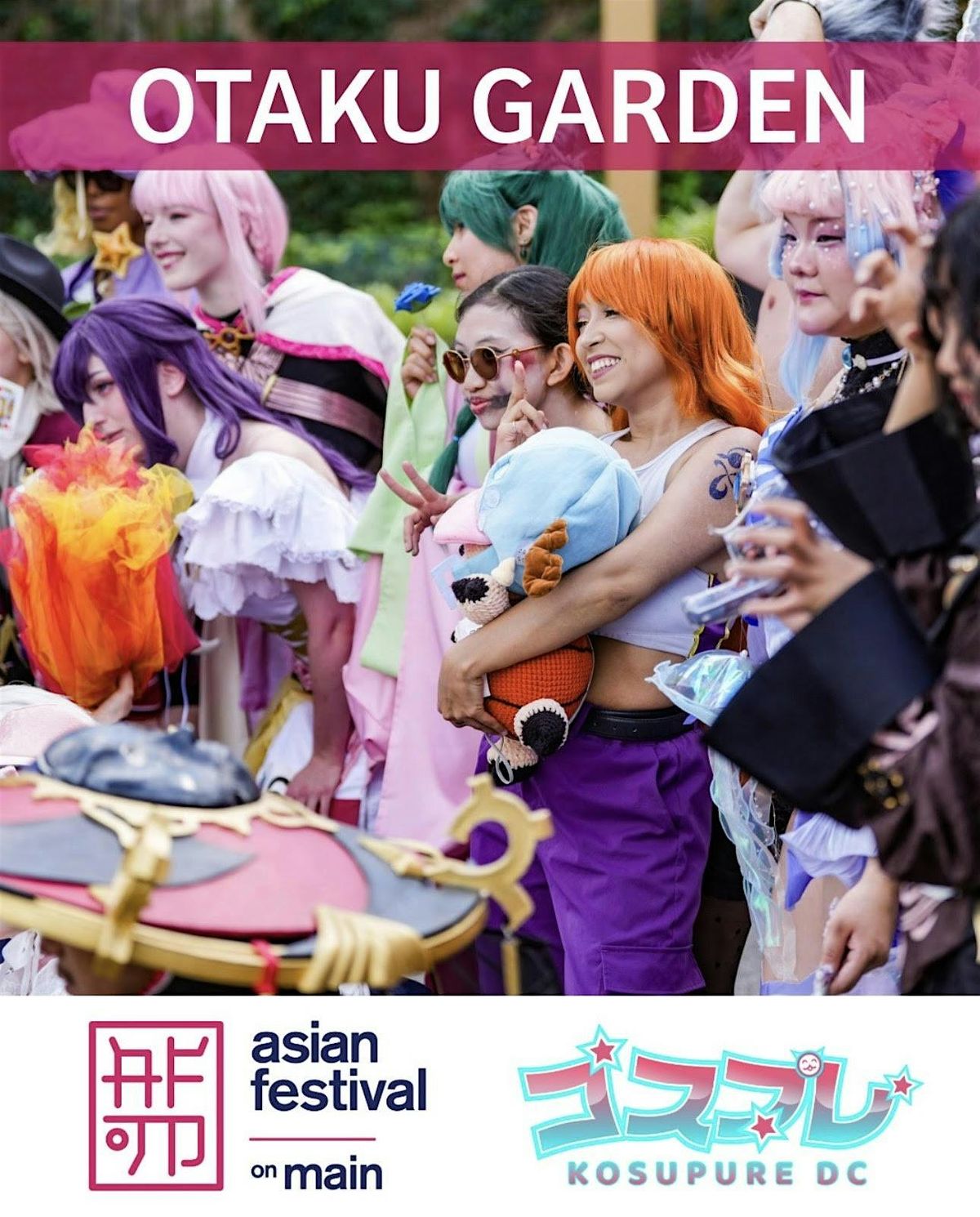 Calling all Cosplayers and Otakus! Join us on May 17, 2026, from 11:00am - 6:00pm as Asian Festival on Main in Fairfax, Virginia partners with Kosupure DC to bring an exciting family friendly day of cosplay to life with the debut of Otaku Garden! Come showcase your creativity, craftsmanship, passion for cosplay and anime! We will have cosplay photography, and a Cosplay Runway open for all cosplayers!