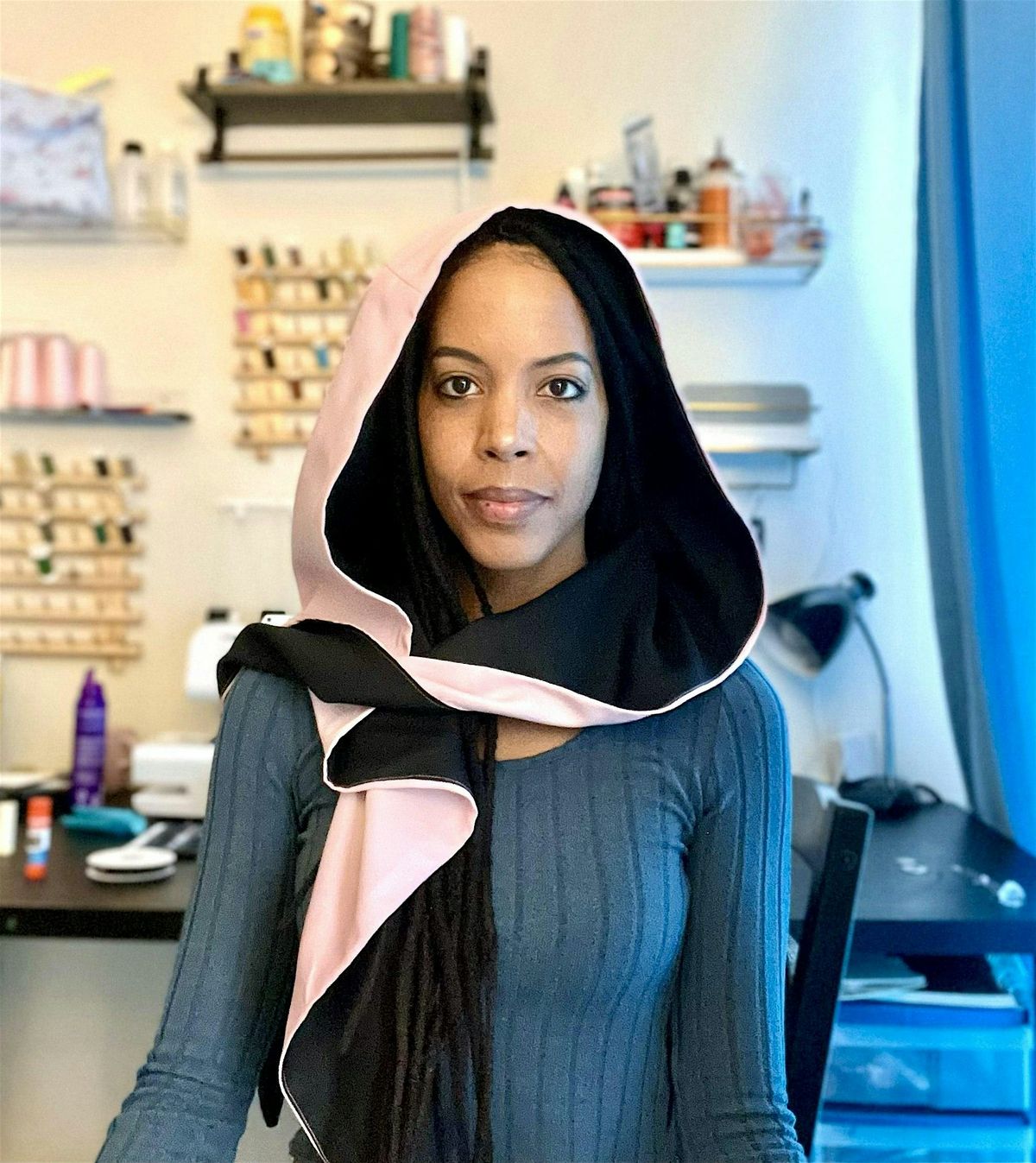 This sewing class is for beginners/ advanced beginners and teaches how to sew a reversible hooded scarf with a lining. Students should already know how to do a straight stitch on a sewing machine. You will learn how to understitch and topstitch for clean and crisp-looking garments.