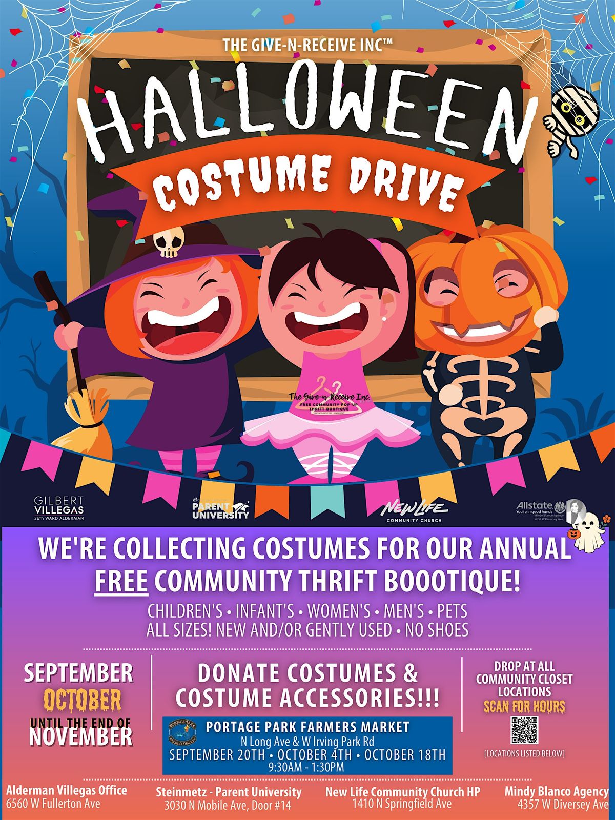 - ONLY accepting COSTUMES to be held for the October - BOOOtique [At Portage Park Farmers Market Tent/Bin]