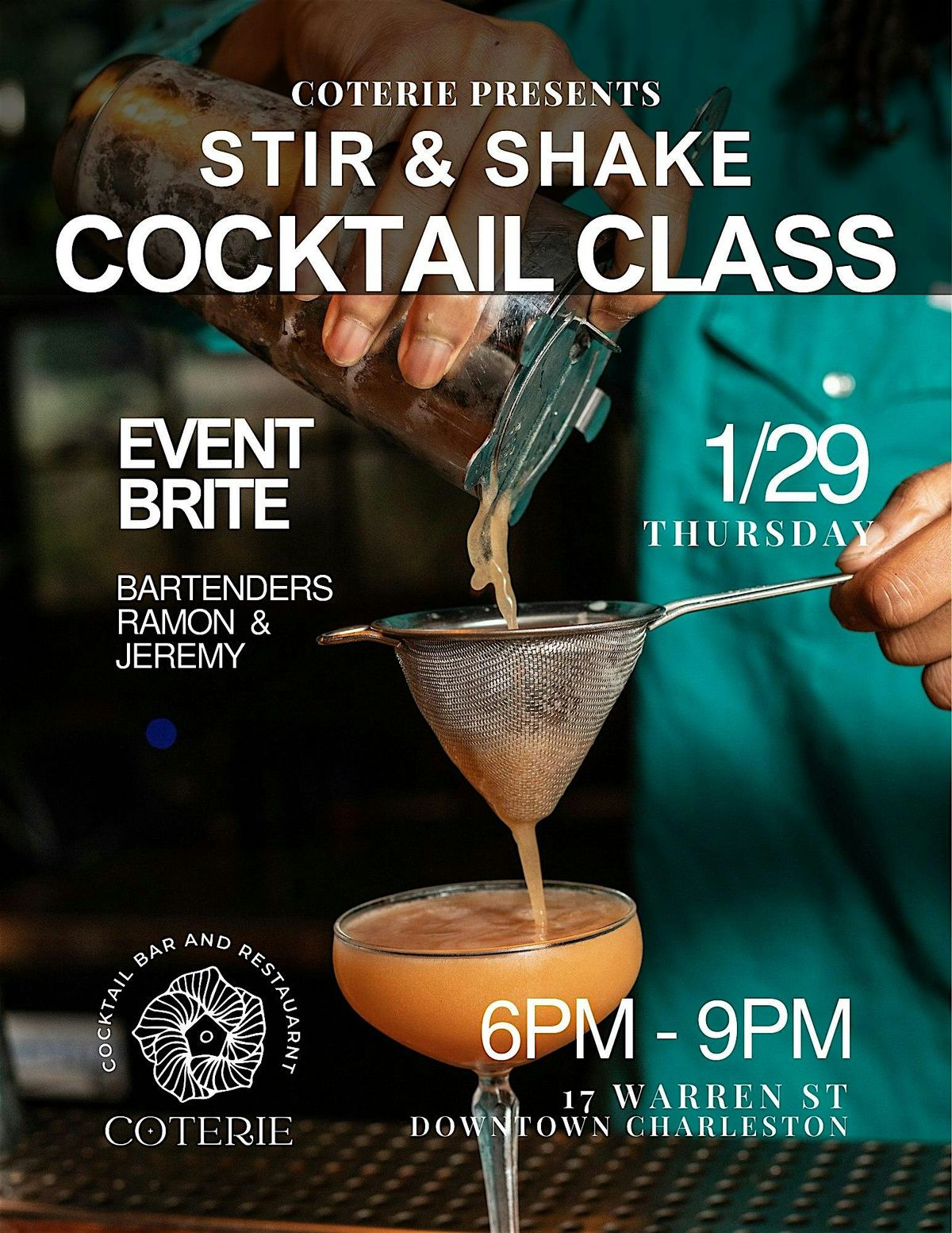 Come join us at Coterie, 17 Warren Street, Charleston, SC, USA for a fun and interactive cocktail class! Learn how to mix up the perfectly balanced cocktails shaken and stirred while enjoying the vibrant atmosphere of our venue. Our expert mixologists Ramon & Jeremy will guide you through the process, teaching you tips and tricks to impress your friends at your next gathering.
