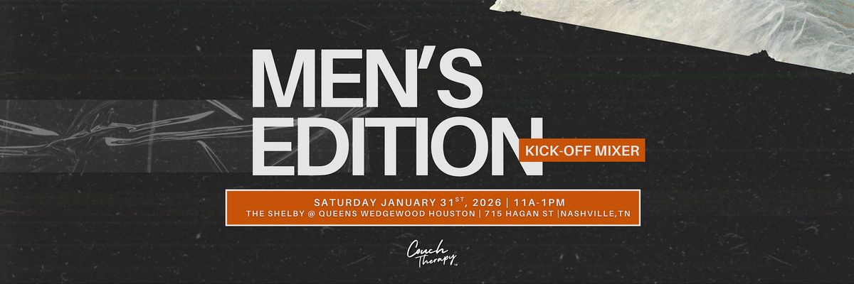 Welcome to Couch Therapy: MEN-ONLY EDITION! Couch Therapy creates a safe, judgment-free space for honest conversations about manhood in today’s world. Many men carry unseen burdens that are rarely named, much less unpacked. We invite you to join our kickoff mixer for a time to gather, connect, and get a glimpse into the upcoming Men's Couch Therapy Sessions for the year! Come connect with a brotherhood of men who are ready to put down the mask, share the weight, and rewrite their narrative.
