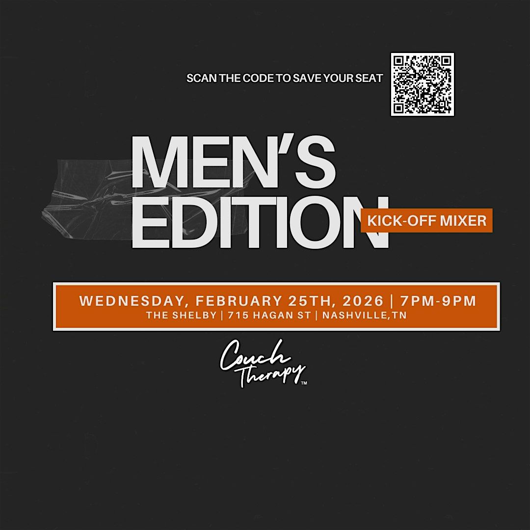 Welcome to Couch Therapy: MEN-ONLY EDITION! Couch Therapy creates a safe, judgment-free space for honest conversations about manhood in today’s world. Many men carry unseen burdens that are rarely named, much less unpacked. We invite you to join our kickoff mixer for a time to gather, connect, and get a glimpse into the upcoming Men's Couch Therapy Sessions for the year! Come connect with a brotherhood of men who are ready to put down the mask, share the weight, and rewrite their narrative.