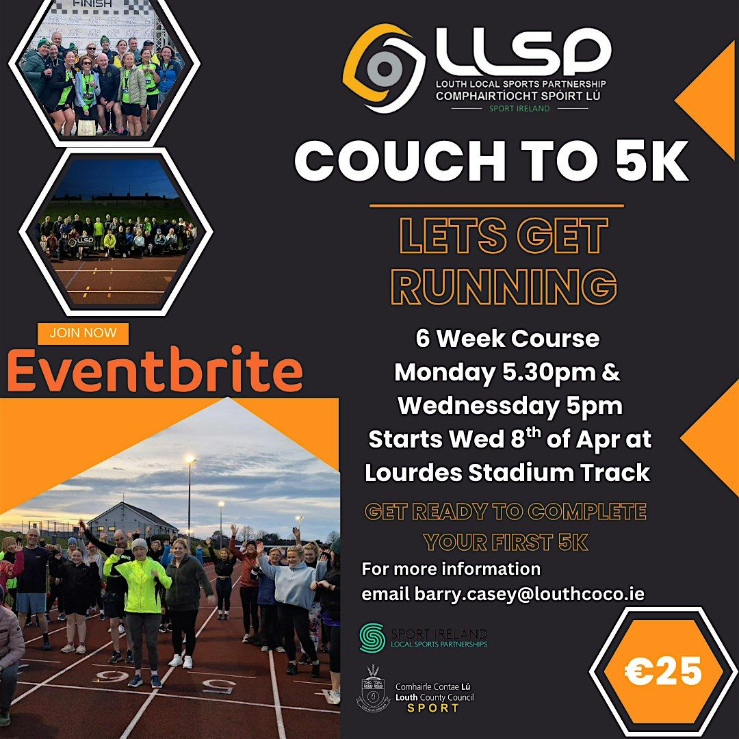 The Couch to 5k programme is a physical activity programme specifically aimed at anyone who has been particular sedentary for the last number of weeks. Starts on Wed the 8th of April, will take place every Mon at 5.30pm and again on Wed at 5pm