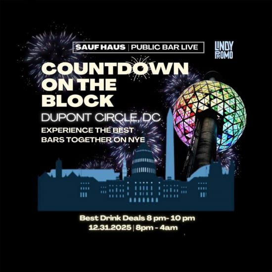 Highlights 🎉 Two venues, one massive indoor–outdoor party 🍸 Complimentary drink if you arrive before 10PM 🎶 DJs spinning Top 40, hip-hop, remixes & dance hits General Info 📅 Date & Time: December 31, 8:00PM – 4:00AM 📍 Location: 1216 18th St NW, Washington DC, 20036 🍹 Drink Specials: 8PM–10PM 🎟️ Entry includes access to Sauf Haus & Public Bar Description Take over Dupont Circle this New Year’s Eve at an all-night block party across two top hotspots: Sauf Haus and Public Bar. With indoor–outdoor vibes, multiple floors, epic DJs, stacked bars, and a high-energy crowd, this is the NYE party that goes until 4AM. Enjoy early drink specials, a complimentary drink before 10PM, and nonstop music and celebration across both venues. Get your tickets for Countdown On The Block NYE26 Block Party in Washington DC now!