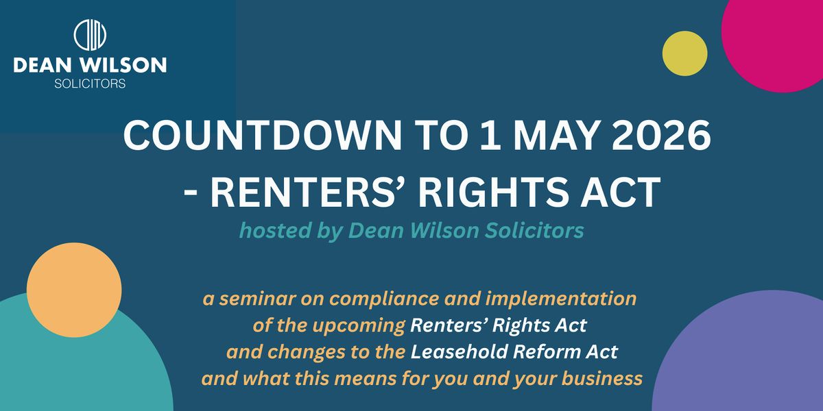 The Renters’ Rights Act 2025 introduces the most significant changes to the private rented sector in over a generation, with the first phase of reforms coming into force on 1st May 2026. These changes affect all landlords, agents and property practitioners and will fundamentally alter the legal and practical framework for residential letting. This seminar, hosted by Dean Wilson LLP and led by Daniel Dickson, Senior Associate Solicitor and former President of the Sussex Law Society , provides a clear and practical guide to the reforms, focusing on what participants must do now to prepare for the transition.