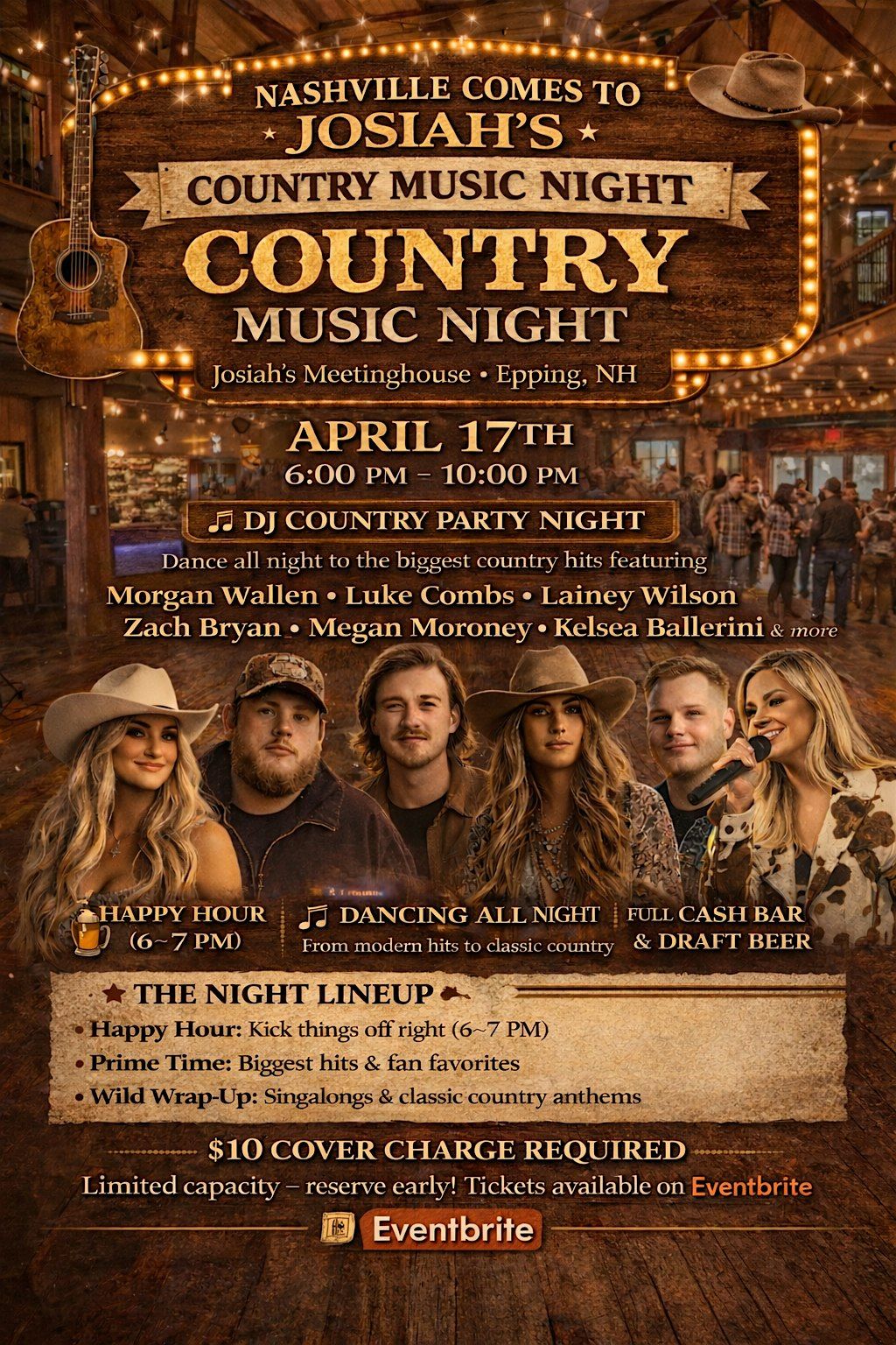 Country Music Night at Josiah’s is a high-energy evening of dancing, great music, and good times in the heart of Epping, NH. Enjoy a Nashville-style atmosphere as a live DJ spins today’s biggest country hits along with classic favorites that keep the dance floor moving all night.