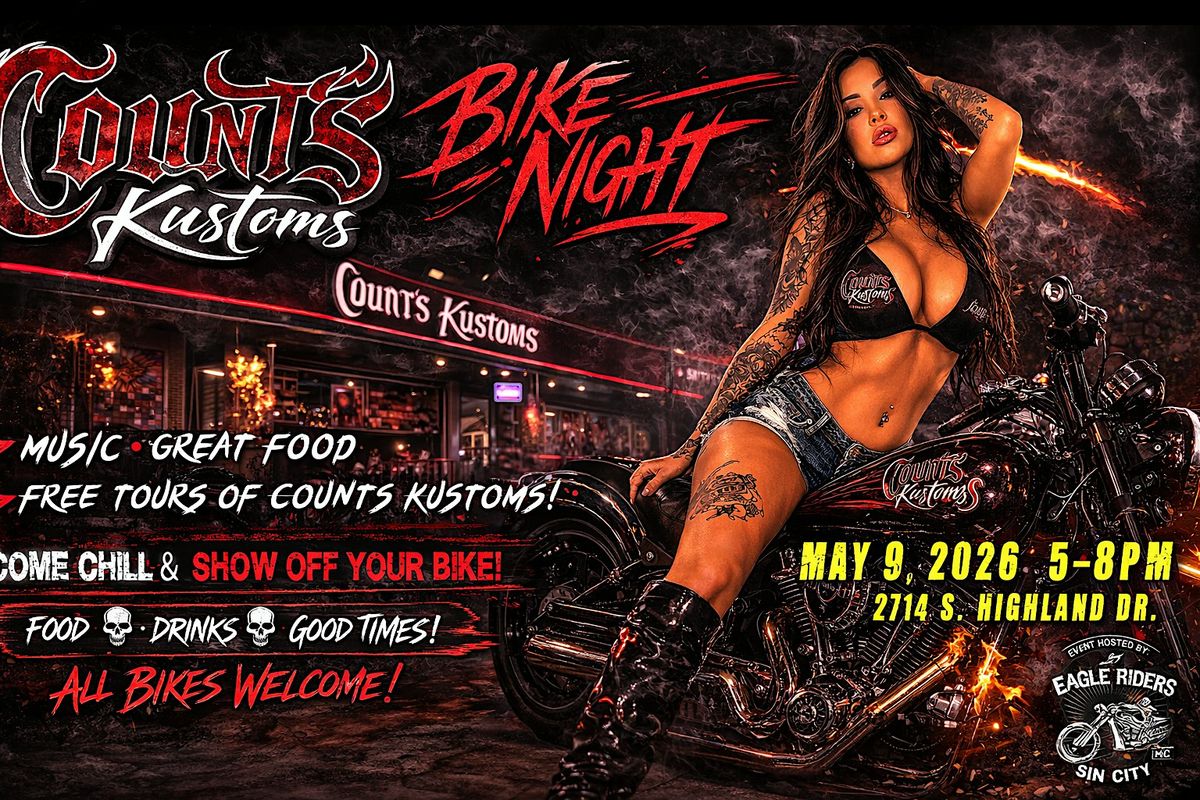 Come on down to a special bike night, hosted by the Eagle Riders Motorcycle Club over at the amazing Count's Kustoms! We will have food, music, and special free tours of the Count's Kustoms facility, as seen on their TV show!