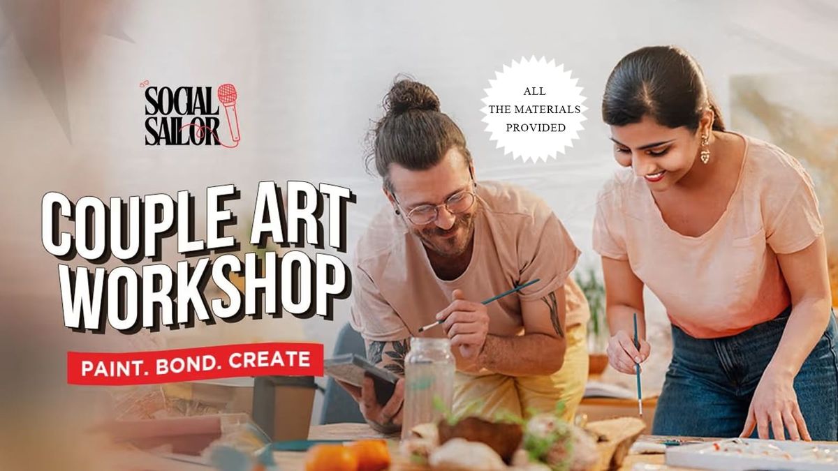 🎨💑 Couple Art Workshop – Create Together, Bond Forever!Unleash your creativity together at the Couple Art Workshop! Whether you’re with your partner or a close friend, this experience is all about bonding over colors, laughter, and shared memories. No art skills required—just bring your enthusiasm!Enjoy a soothing atmosphere with guided instructions, relaxing music, and all materials provided. Walk away with a joint masterpiece and unforgettable moments.✨ What to Expect:✔️ Step-by-step guidance from an experienced artist✔️ All art materials included✔️ Paint a collaborative or side-by-side canvas✔️ Fun icebreakers and a relaxed, romantic vibe✔️ Take home your artwork as a symbol of your bond🎨💕 Paint, connect, and make beautiful memories—together!🖼️ Poster and description are for visual representation – actual artwork may vary.