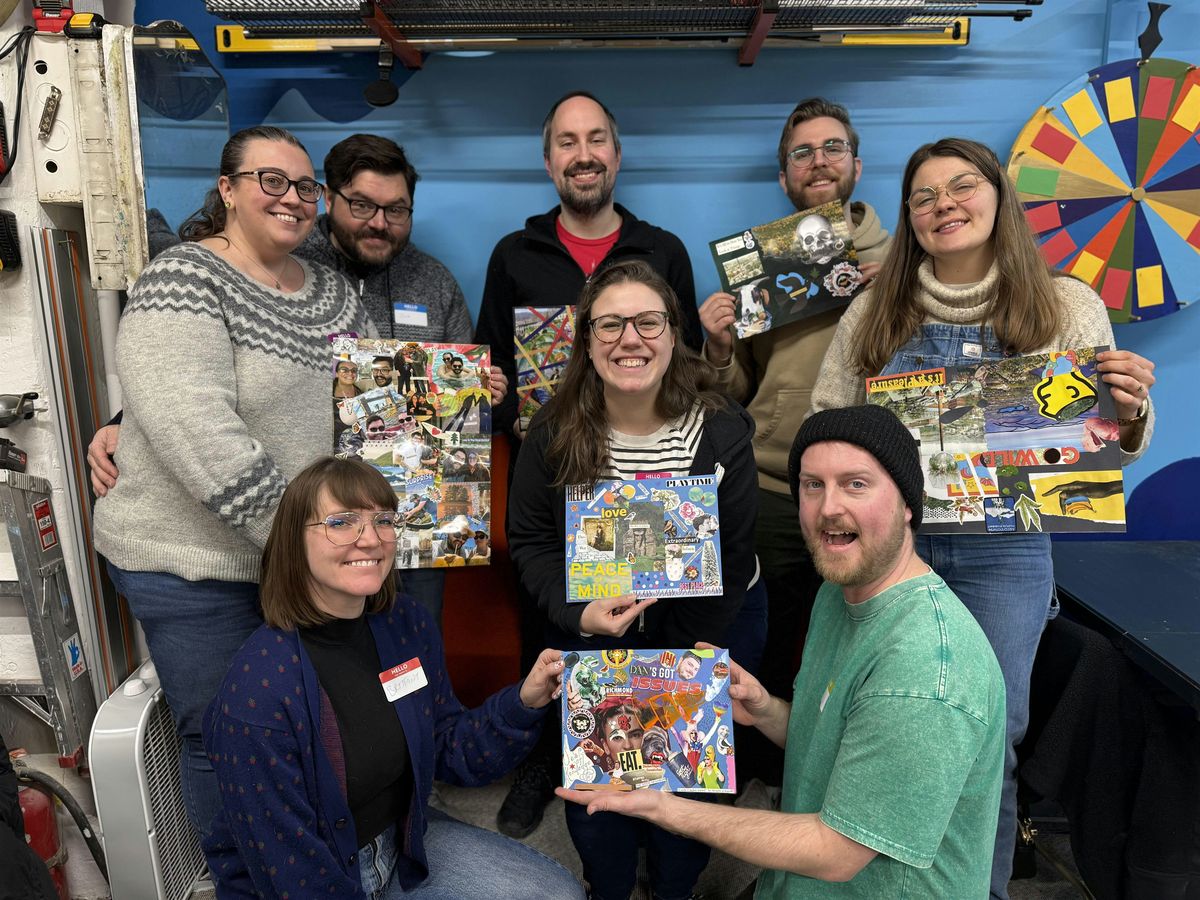 You’ll work with paper, magazines, scissors, glue, and simple prompts to create a collage or shared piece that reflects your relationship, your humor, or whatever feels right that night.