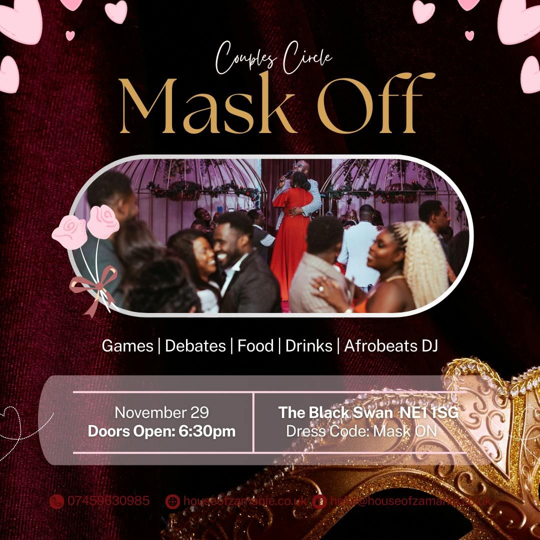 This year’s Couples Circle is a night to remember — an evening where romance meets vulnerability. Mask Off invites you and your partner to take down the walls, open your hearts, and celebrate love in its purest form.Expect a beautiful blend of games that spark laughter, debates that stir thought, and poetry that touches the soul. Enjoy delicious food and drinks, while soaking in the sounds of live music and dancing the night away with our Afrobeats DJ.