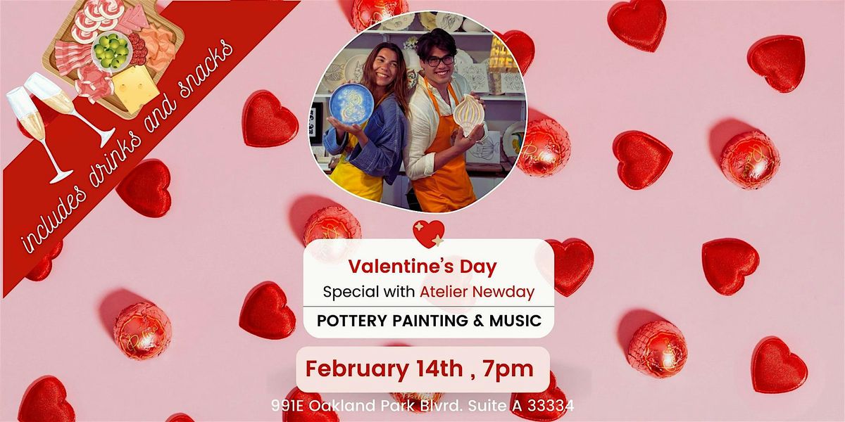 Join us for a delightful evening at our painting studio! At this event, feel free to bring your favorite drink, choose your preferred art piece among the potterie pieces and colors, and enjoy painting alongside your loved ones. Immerse yourself in the creative process while listening to a calming music, engaging in lively conversations in the cozy ambiance of our studio. It's a perfect blend of art, relaxation, and cherished moments for Valentine's Day.