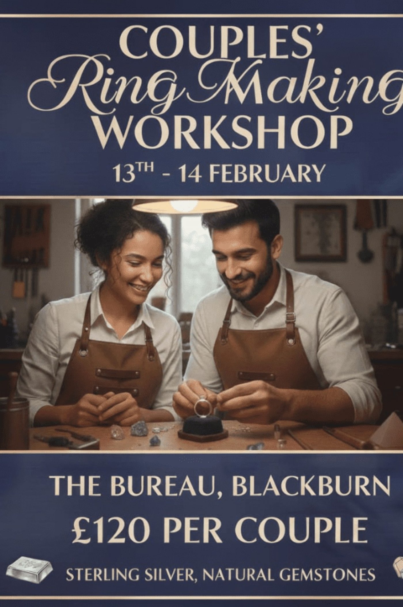 Workshops are 1 hour long per couple and are run by local jeweller Peter Market Made Jewellery, who also runs a workshop from Darwen based in Urban Seed.