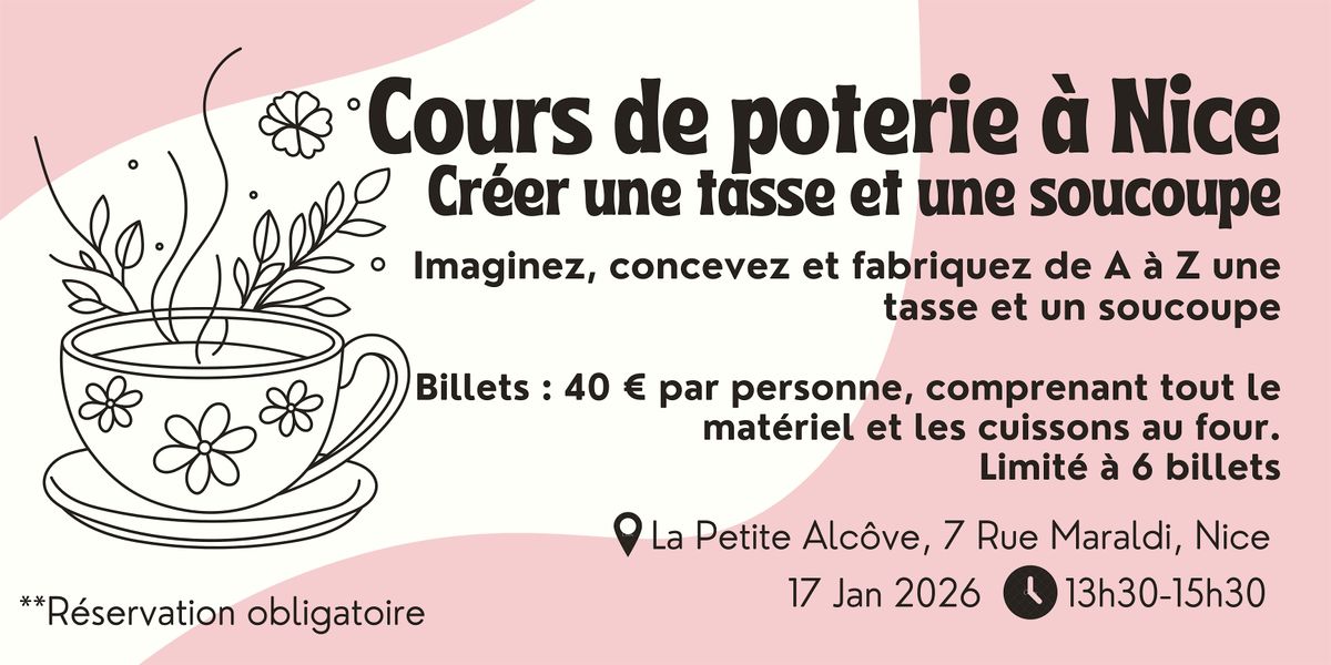 Ticket: 40€, includes all materials and firings and refreshments. Collection from my home in Antibes. +5€ if you would like your item delivered to you. 20€ deposit taken at booking, the remainder to be paid at the class with cash.