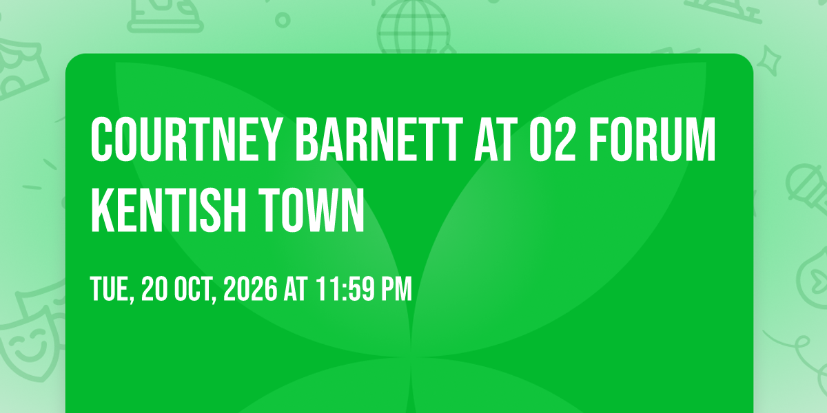 🌟 Be part of history at Courtney Barnett at O2 Forum Kentish Town, an extraordinary gathering that will captivate your imagination! 🏛️ The prestigious O2 Forum Kentish Town in London, EN sets the stage for an unforgettable experience on October 20th, 2026 at 11:59 PM. ✨ They are bringing together the finest elements of entertainment and innovation to create moments that will take your breath away. From the moment you arrive, you'll be immersed in an atmosphere of wonder and excitement. 🎯 This carefully planned event ensures every guest experiences something truly special. 🎊 Early booking is recommended for this must-attend event of the season!