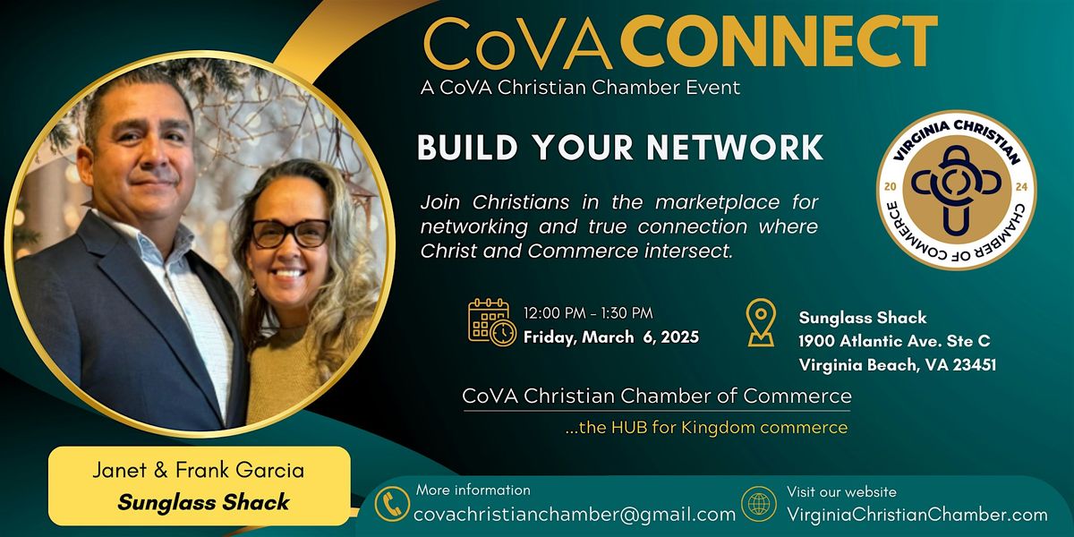 The CoVA Christian Chamber of Commerce brings Christian business owners together to connect, collaborate, and grow in the marketplace. This event is one of our regular networking gatherings for members, created to build real relationships and encourage faith-driven leadership in business. Non-members are welcome to attend one meeting for free to experience the Chamber community. Those who wish to continue can become members at virginiachristianchamber.com