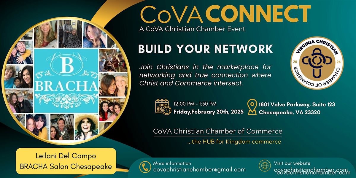 The CoVA Christian Chamber of Commerce brings Christian business owners together to connect, collaborate, and grow in the marketplace. This event is one of our regular networking gatherings for members, created to build real relationships and encourage faith-driven leadership in business. Non-members are welcome to attend one meeting for free to experience the Chamber community. Those who wish to continue can become members at virginiachristianchamber.com