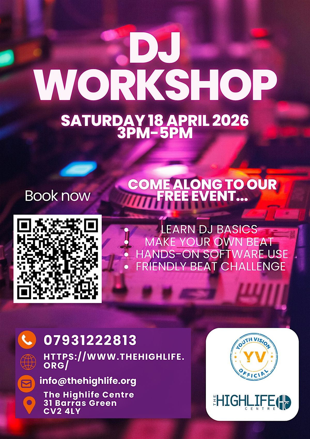 Ready to spin some beats and learn the art of DJing? Join us in person at the Coventry Youth DJ Workshop! It’s a fun, hands-on session where you’ll get to explore mixing. Whether you're a total beginner or just want to sharpen your skills, this workshop is your chance to dive into the DJ scene and meet fellow music lovers. Don’t miss out on the vibe and good times!