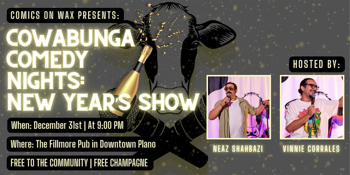 Come and join us for Cowabunga Comedy Nights: New Year's Show at The Fillmore Pub! Get ready for a night brimming with laughter and good vibes as we welcome the new year with some of the funniest comedians around. The show starts at 9:00 PM on Tuesday, December 31st, 2025. Don’t miss out on this epic event! Gather your friends and experience an unforgettable night of comedy! 🎉🎤🤣
