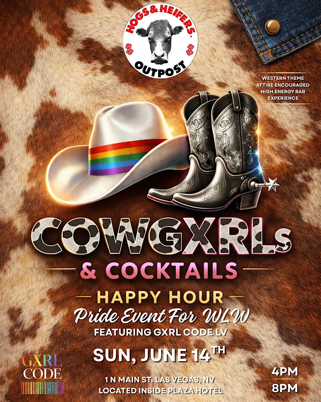 Join Gxrl Code LV at Hogs & Heifers Outpost for a high-energy, western-themed day party built for the WLW community. Expect good music, strong drinks, and a room full of beautiful energy where you can mix, mingle, and connect β whether youβre outside solo, with your crew, or on a date.