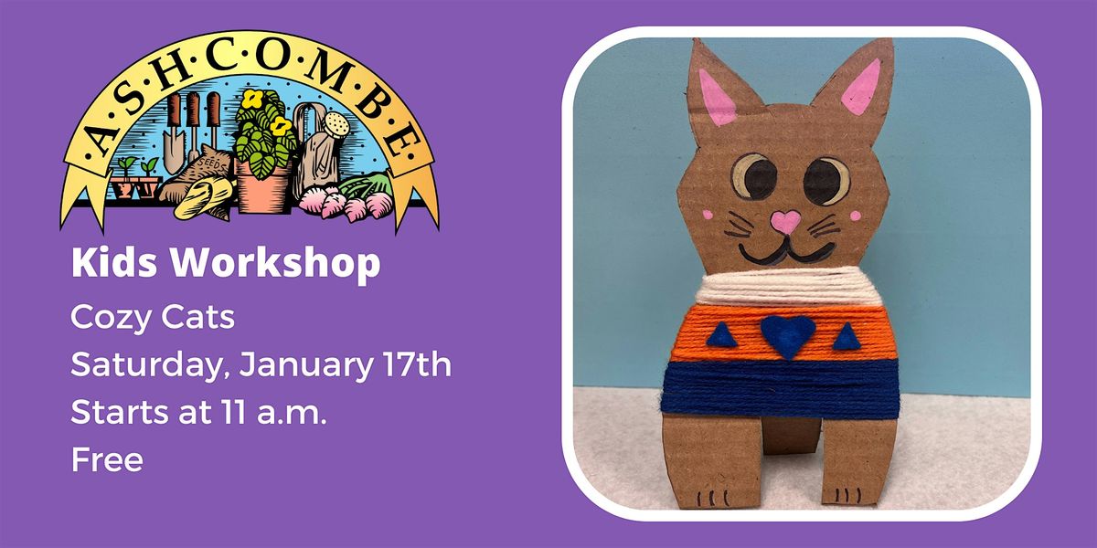 Come join us for a free kids class in our greenhouse! Create an adorable cat using upcycled materials of cardboard and yarn.