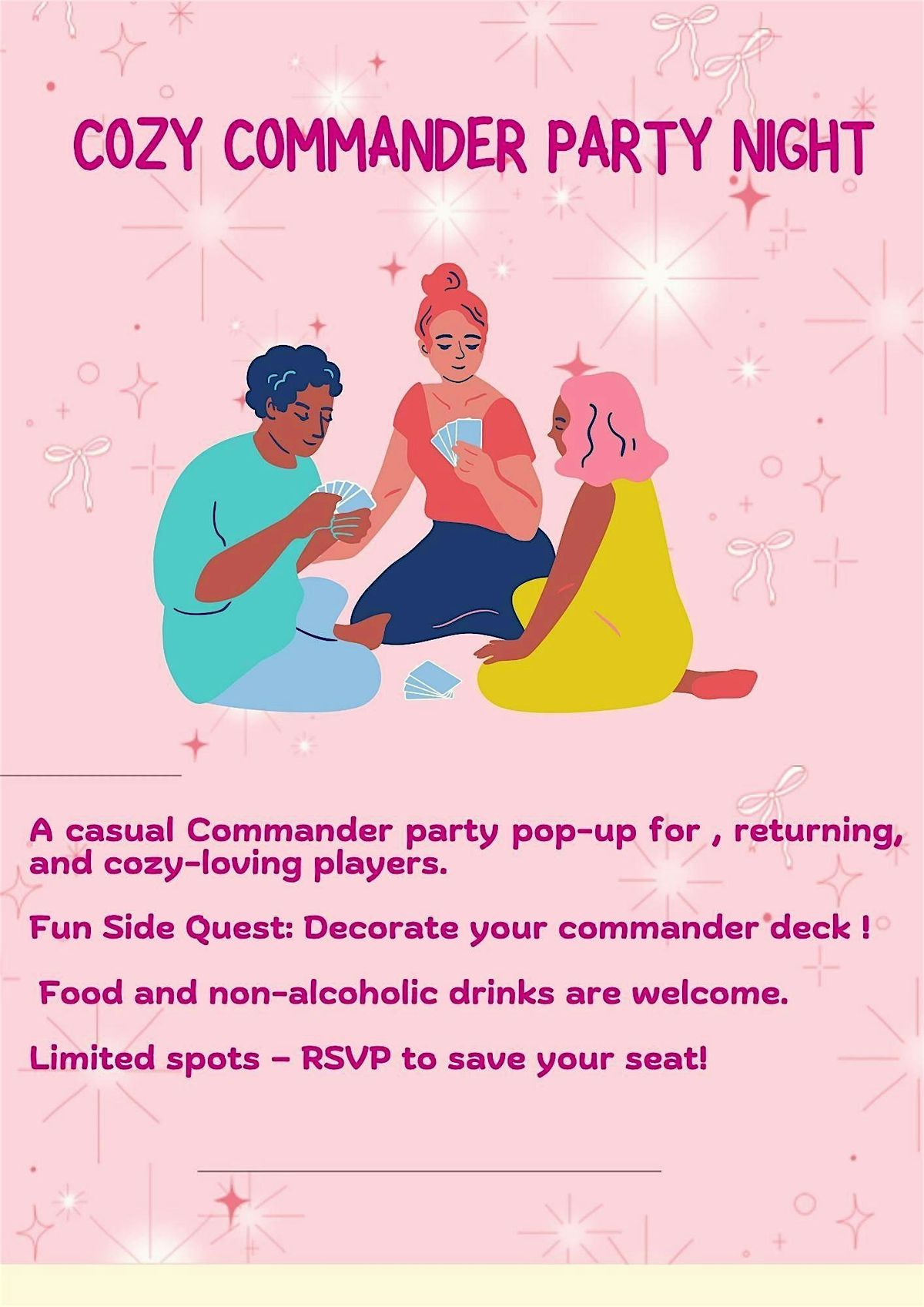 Cozy commander night is a casual Commander pop-up made for new players, returning players, and anyone who wants Magic to feel a little softer, warmer, and more welcoming.